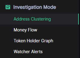 Find the **Address Clustering Tool** under **Investigation Mode** category